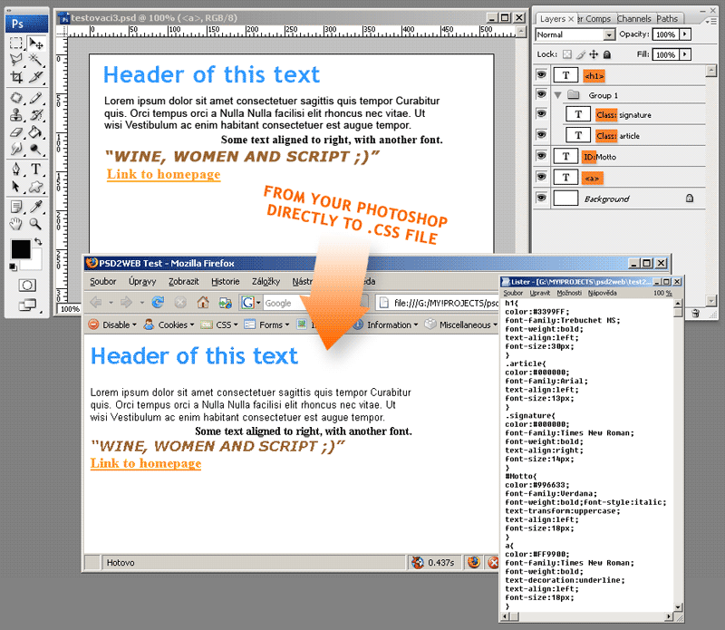 So, you can easily style text (ID's, Classes and tags!) for your websites, directly in Adobe Photoshop.
